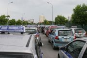Có lẽ có đến cả nghìn chiếc taxi đỗ tại KĐT Nam Trung Yên (Nam Từ Liêm - HN) để chờ được cấp phù hiệu mới khiến giao thông bị ảnh hưởng.
