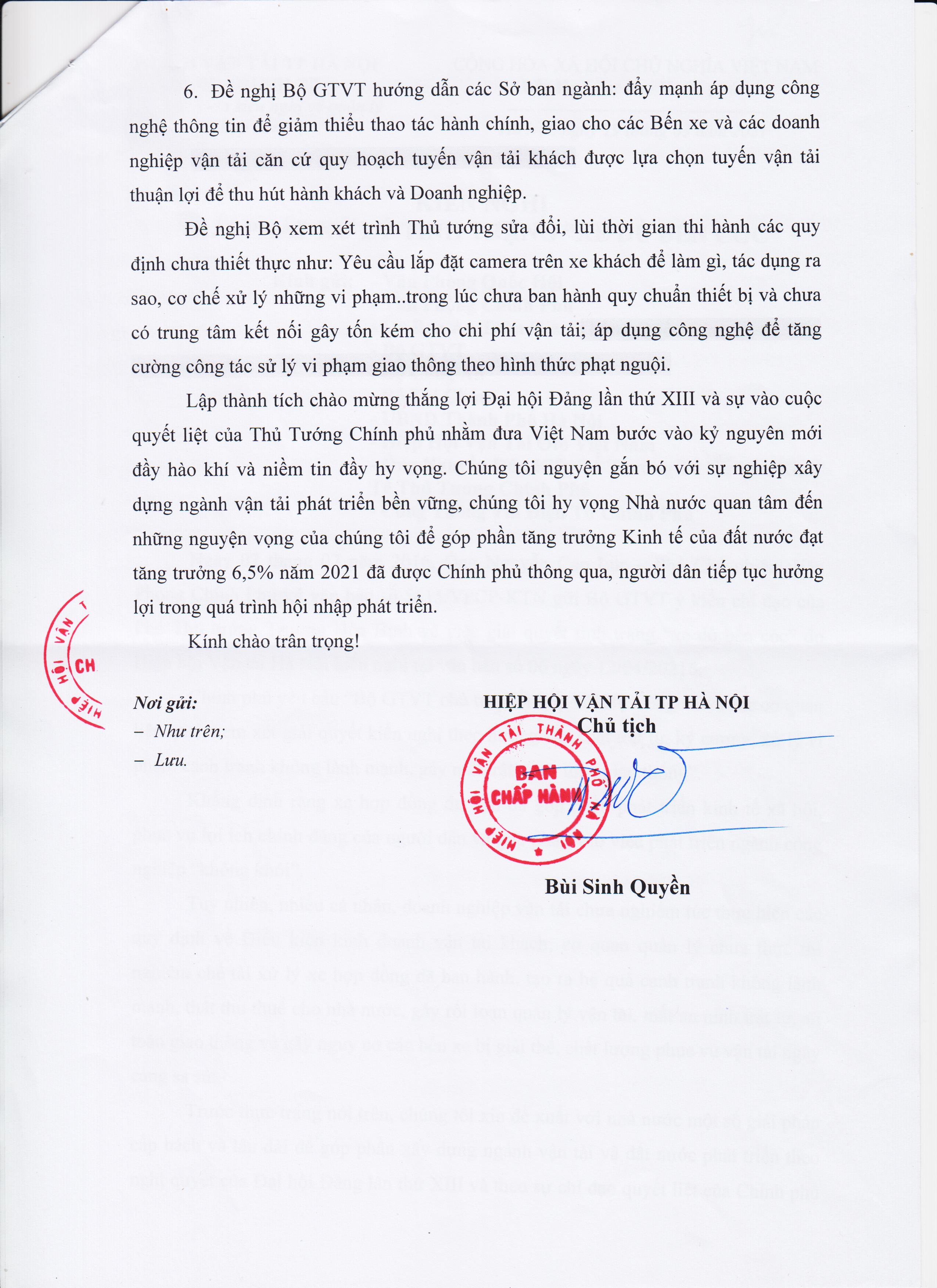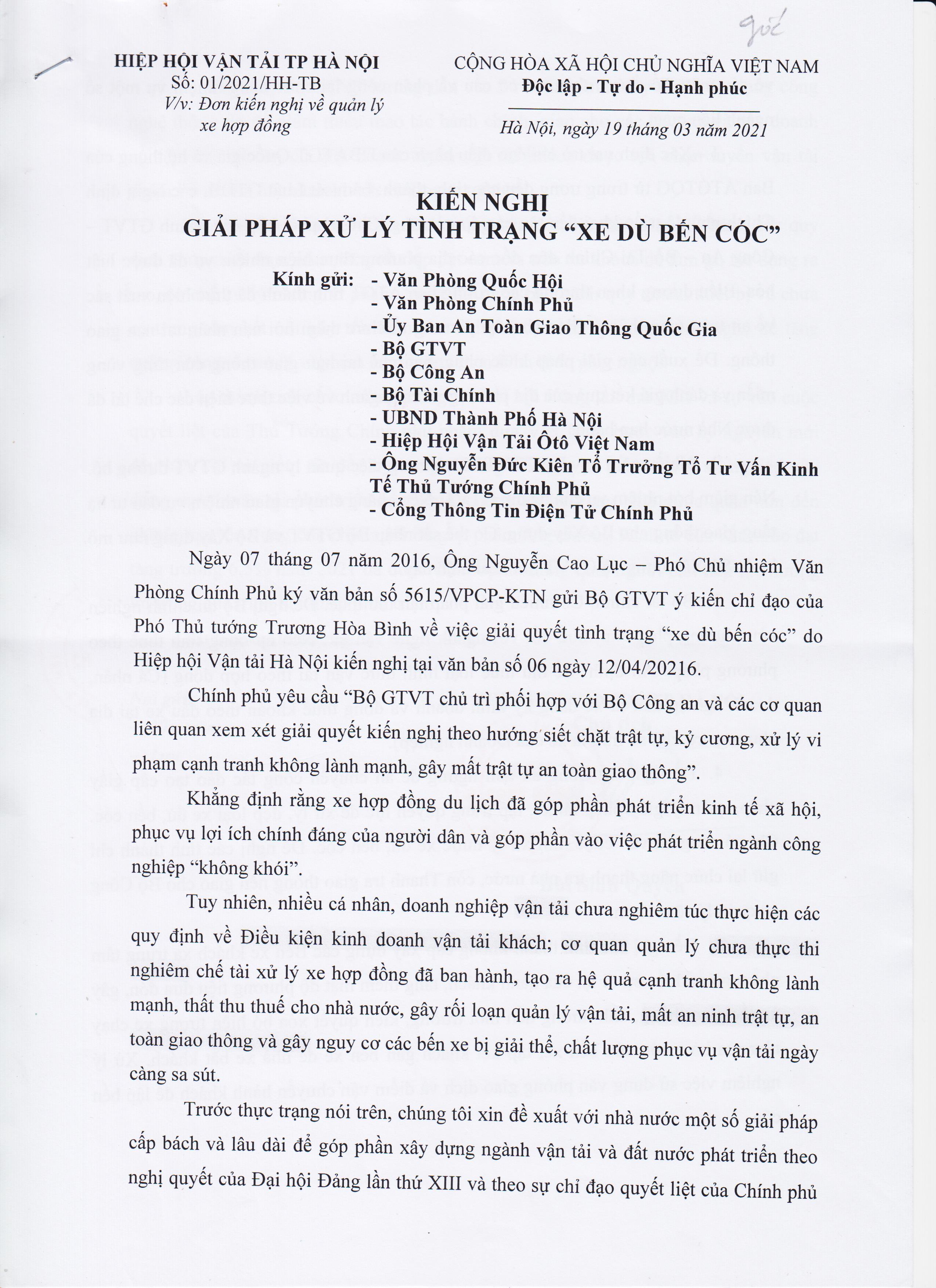 CÔNG VĂN KIẾN NGHỊ LẬP LẠI KỶ CƯƠNG QUẢN LÝ PHƯƠNG TIỆN VẬN TẢI ĐƯỜNG BỘ VÀ BẾN XE KHÁCH